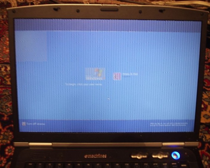 Anyway, after an airplane trip, the laptop is experiencing a strange display problem. Pictures say it all.