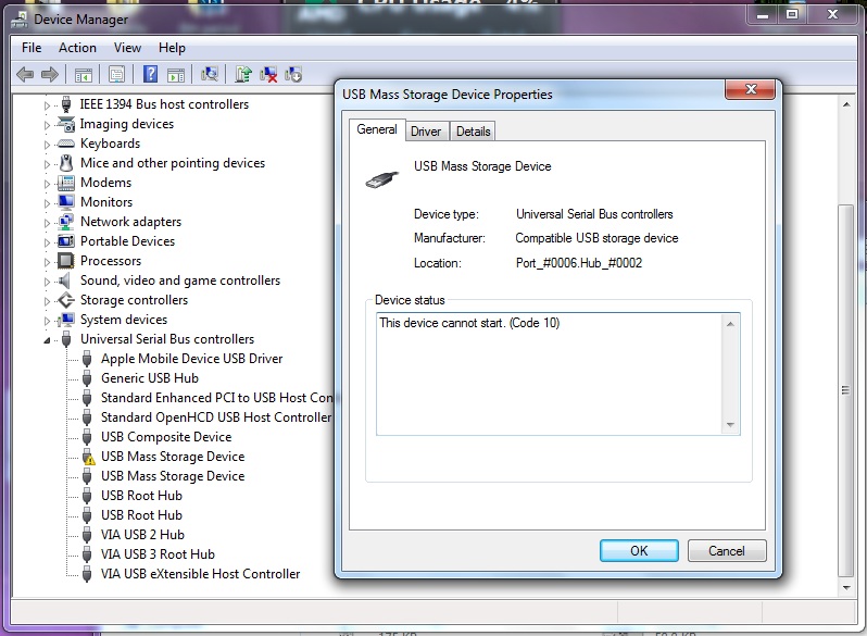 Hi I am seeking help for my seagate HDD is has stopped working and when ever I connect it makes a weird noise. It is not showing up on the PC either and it just keeps making that noise. It has been not dropped and has been in the same place for a week and now it does not work. After a while like 10 minutes it connects to pc but does not show up in MY COMPUTER but is shows up in DEVICE MANAGER and gives me a an error code. I have posted a video of my situation and pic of the error code.