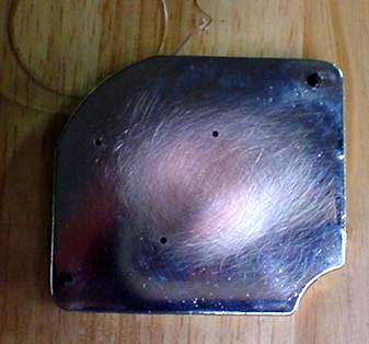 My 8RDA is down until I can replace the RAM (it’s dead, Jim) on Monday (lifetime warranty, good). I figured I might as well clean the cooler on my PNY Ti4600. I decide to lap it since the bottom of the heatsink unit doesn’t look all that smooth. I didn’t do much lapping, but it appears that at least part of the unit is copper. I doubt it’ll give me anything extra in overclocking, as the Ti4600’s were clocked pretty close to the edge at stock speeds, but the contact should be better.