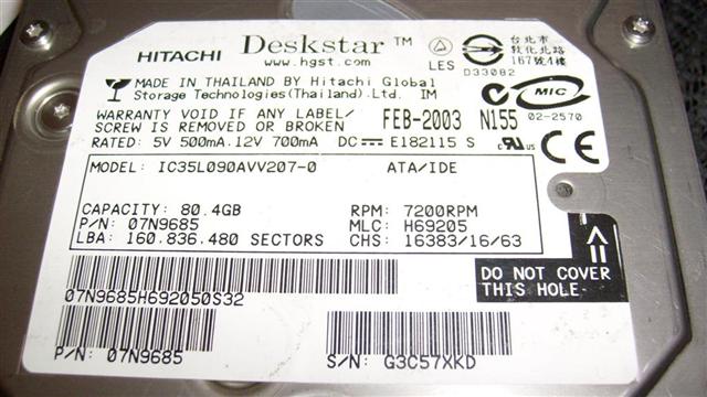 - Capacity: 80.4GB (80.0 nor 82.3 would work, it HAS to be 80.4)